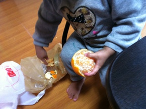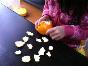 写真は2番目が上の孫っちで3番目の写真が皮を一回一回捨てている下の孫っちのむき方!