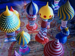 この大きな高さが4~5メートる程ある人形もとても良く出来ており、子供達に本物は無理でもせめて生を大画面で見せてあげたい気持ちになりました。