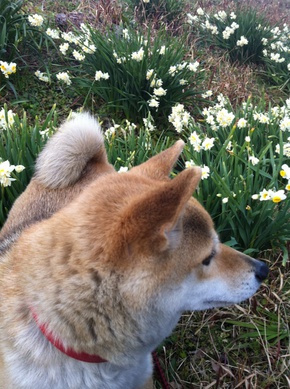 昨年の4月6日に人気の無い茶畑の中、迷い犬であった彼女を私が車で轢きそうになったのが「縁」で今に至っています。