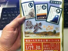 文字通り福島の子供達の現代版組踊でタイトルは「息吹」で「南山義民喜四郎伝」として今から300年むかし、村のため、民のため、義を貫き通した男達の物語を演出。