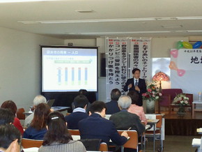 参加者として私たち市民約50人! 「浅羽地域包括支援センター 主任介護支援専門員 安倍光子さん! 講演を行なって頂いた袋井市理事 原野秀之氏! そしてNPO法人ブライツの理事長でありいつも楽しく会場を盛り上げて頂いている村田朝子さん!(あえて女性のお二人はOOさんとさせて頂きました!)