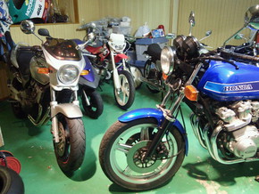 残念ながら予定通りに走る事が出来なかった展示場にあるバイク達が夜になってより寂しく見えました。