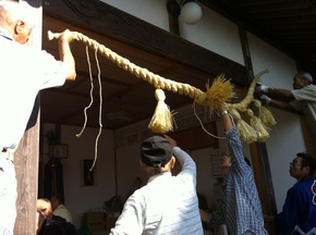 こちらも神事の時には大切な注連縄(しめなわ)の取り付け。