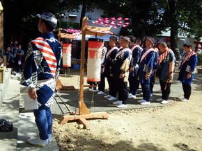 これは地元の各町内の山車(地元では屋台とよびます!)の行動の責任者である「頭取」の皆さんが参拝に来たところ。