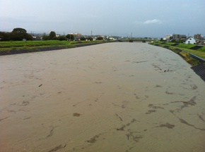 写真は以前の台風の時に私が撮影した近所の川の様子。