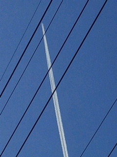 どこの飛行機なのか解りませんが朝からウジャウジャ飛びまわって意外と低空で飛行機雲を出しまくり!
