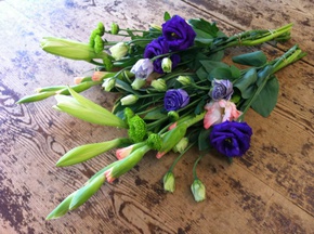 草を抜き水で汚れを落とし同級生でありセンスの良さに常に感激をさせられるブログ「nari色日記」でお馴染みの「菜里 Hana Club」さんのオーナーであるOさんが選んでくれた花を供えて来ました。