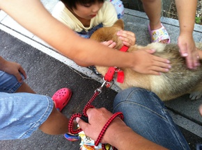 犬に慣れていない子供がたまたま多くヨコネを見かけると寄ってきたりしますがヨコネも全然