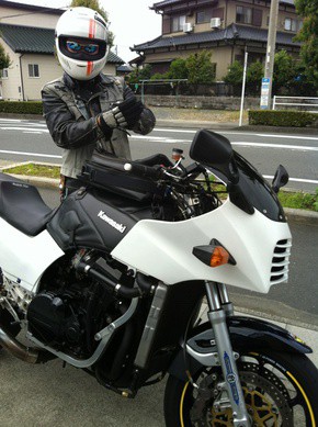 最初にお店にいた私は「誰だろう??」と思いながら外を見ると殆ど同級生であるコケちゃんが愛知県より自慢の愛機のNINJAで遊びに来てくれました。