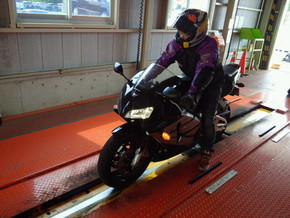 バイクの車検に関しても同じこと。 高速走行でのタイヤバランス、ハンドルの振れ、エンジンや各部の異音や異常なども確認を致します。