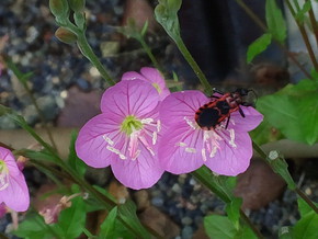 こちらの堤防の花には珍しい虫が遊びに来ていました♪