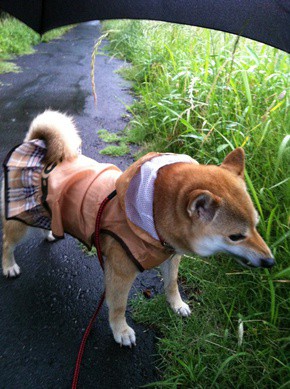 そんなこんなでいよいよお洒落にカッパを着たヨコネと雨の中の散歩に出ました!
