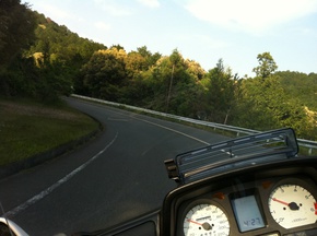 安全マージンを非常に高くとってあるこのバイクはバンク角がかなり浅く、チョコッと頑張ると直ぐに「ガーッ!!」とガイドバーを擦ってしまいますがその手前までのバンクで走れるコーナーリングは結構楽しめます!