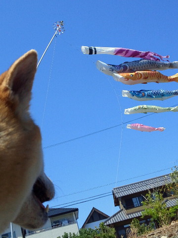 鯉のぼりも五月晴れの中、気持ち良く泳いでおりワンコも目が釘付けとなっていま・・・・・・せんでした!(笑)