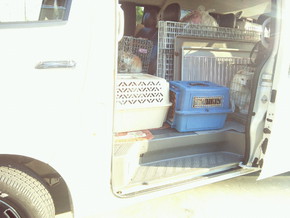 神谷さんが本日乗って来たハイエースには沢山の可愛い犬達がケージに入ったまま乗っていました。