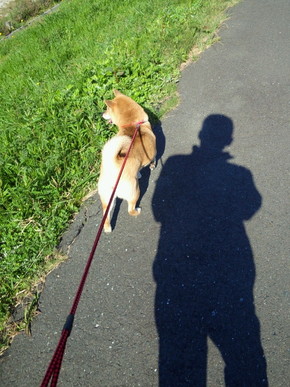 写真は今日の朝日の中での散歩中に撮ったもの。 私の影と並んでおりとても好きな雰囲気の写真となりました!