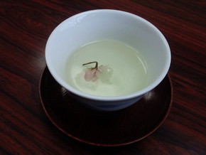 今年は家庭科の先生の気配りで学校で咲いた桜の花を利用した「桜茶」を出してくれました。 こんな気配りって嬉しいですね♪