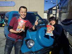 そんな中で車検だけで無く点検にも来てくれた今回、少し前に四国で仕入れた揚げせんべいもお土産に頂き感謝はピークに達しています!!