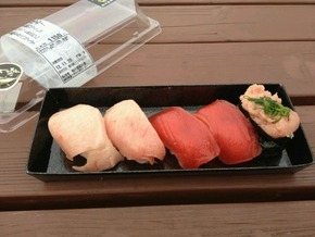 富士宮焼きそばを一緒に食べた2人はどこかでまだお腹に余裕を感じていたのでしょうか、売店で美味しそうな握り寿司を発見!