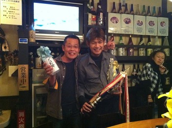 それよりも!今年の決勝はとても楽しくアットホームに迎えられた事と、マスターとママから準優勝の賞品である焼酎を頂いた事、そして優勝でも2位でもどちらでも良いように気遣ってくれ「お疲れ様!」とだけ書かれた札の付けられた、賞品と今年の第一号のクリスマスプレゼントを兼ねた様な監督からの花のプレゼントもあり、本当に大会中とても楽しい時間を過ごせた事が嬉しかったです!
