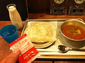 裏メニューは付けダレがミートソースとカレーソースの両方が一つの器に入ったものだったのです。