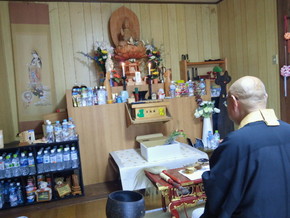 台風の中での葬儀となりましたが和尚さんの優しい声のお経が始まると直ぐに激しい雨が降りました。