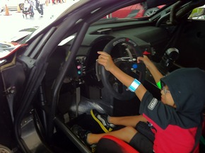 他のメーカーさんなら「手を触れないようにお願いいたします」等と書いて展示しているケースの多いレーシングカーにも子供達を乗っけちゃってます!