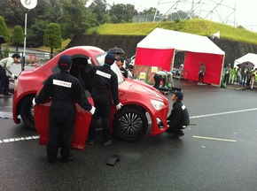 技術会のスタッフの方々が慎重に扱っているところでいかにこのボディには拘りを持ってコストが掛けられたかが解る気がしましたがさすがにトヨタさんだと思いました。
