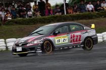 「常にGのかかるおおむたではBRZ有利?と見られていた。土曜日の公式練習では山野哲也(BRZ)がトップにたち、コンマ4秒遅れて松本敏(シビック)がつける。そこから一転して、大粒の雨が降りしきるレイン路面での決勝1本目。トップゼッケンで松本がスタートする。「自分でも乗っているから実感しているんだけど、クランクやシケインのようなセクションで86のバランスの良さはズバ抜けている。さらに山野さんのドライビングを組み合わせると負けるポイントは最初から明確に分かってました。シビックでは進入でしっかり落として、いかに早くハンドルを真っ直ぐにして立ち上がるか?クルマを転がすか?それだけを考えて走ってました」スムーズな走りを心がけた松本のタイムは1分41秒308。ウェット路面上でのトラクション不足を補い、ギリギリのラインを攻める山野だったが、タイムは1分44秒513と松本に3秒のビハインドを背負う。1本目後半のクラスが始まる頃から弱くなり始めた雨脚は、昼前には上がり遠く雲の切れ目に青空が顔をのぞかせる。人によっては長袖が恋しくなるくらいの気温だった午前中。昼休みを挟んで慣熟歩行が終わる頃には、気温とともに路面温度もドンドンと上がっていった。逆転もありうる? そんな予感を漂わせながら2本目がスタート。PN1クラスで微妙に更新頻度が増えていったトップタイム。松本がPN2クラスファーストゼッケンでスタート。1本目同様に基本に忠実な走りを実践する松本だったが……。期待したほどの時計は出せなかったものの、1分41秒111とわずかにタイムアップ。クルマを降りた松本は山野の走りを食い入るように見つめる。BRZのポテンシャルを絞り出しきるまで絞る山野。1本目と比べ明らかに速いスピードで各コーナーをクリアしてゆくが……。ゴールするとタイムは1分41秒423!3秒以上のタイムアップを果たしたものの、松本のタイムに約コンマ3秒追いつけない!ウェット路面というFF車両には絶対的有利を予想された中だったが、優勝が決まった瞬間僅差の戦いに思わず松本敏の口から「キッチリ勝つのって難しいね」というコメントが漏れた。 」