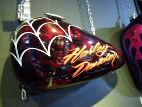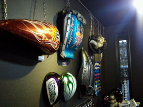 特に目に付くのはやはりアメリカンのバイクのタンク!遊び心は本来アメリカンのバイクに乗る方々の方があるのかも知れませんね。