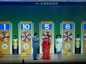 改めて良く見てみると回転している的に電動のスイッチで押された後に矢が放たれ偶然に当たった場所の番号が当選番号………