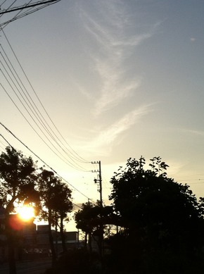 これは今日の早朝の空。朝日が中途半端に輝いており全体的に薄白い感じの空でした。