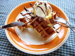 そんな私はバイクのGPレーサーである関口太郎選手がチェコで意識不明のクラッシュを負ってしまったあと、意識が戻り初めてくれたメールにも「食べたい!」と書かれていた「アイスクリームをのせたワッフル!」を頂きました!