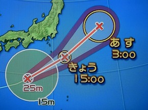 天気予報で見ると台風3号がこんな感じの所まで来ています。