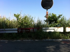 勿論、離れた場所から幕の写真を撮るだけでガードレールの向こう側を見る勇気はありませんでしたが恐ろしい横断幕もあるものですね。