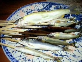 今回もどまん中さんでの飲み先輩で、いつも美味しい鮎を釣って来てくれる、頼もしい鮎釣り名人の「まっちゃん」が興津でまたまた美味しそうな鮎を釣って来てくれました!