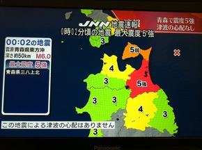 そしてその夜に青森を中心としたマグニチュード6、震度5強の地震が起こりました。