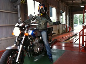 初めに検査員から受ける保安装置のチェック、スピードメータのテスト、ブレーキのテスト、最後にヘッドライトのテスト(これが意外と難しいケースも!)をして合格!