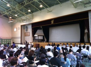 思いっ切り言い訳になってしまいますが、私の挨拶の前に体育館の大きなカーテンをガサガサと揺らすほどの風が吹きました。
