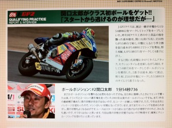 普段当社や地元の袋井、浜松地区に時々遊びに来てくれている関口太郎選手が昨年の最終戦までランキングトップであったJ-GP2クラスで実力を発揮しポールポジション!