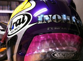 先日、生徒会長を務めた高校を卒業したばかりの我らが地元の国際ライセンス女性レーサーの今年度のヘルメットのペイントが遂に完成!
