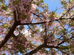 それとは違い、振り返った公園では染井吉野より花の色が濃い目の「河津桜」が見事に咲いていました!