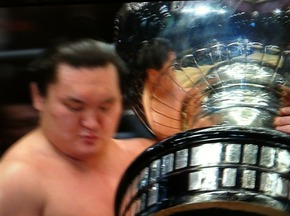 ねばった鶴竜の足の疲れを狙ったように横綱の上手投げが決まり白鵬の優勝が決まりました!