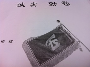 今まで無かった「誠実 勤勉」の校訓と校旗の画が載せられているではありませんか。