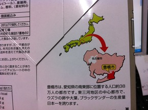 更に驚いたのが箱の裏には全国展開を狙ってなのか日本における豊橋市の位置が示された地図まで・・・・・・Hくん今回も本当に真面目なのかそうでないのか解らない面白いお土産を有難うございました!