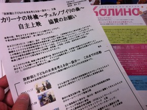 今回来て頂いたのはチェルノブイリ事故による放射能汚染被害を映画にした「カリーナの林檎~チェルノブイリの森~」と言う映画の上映の案内でした。
