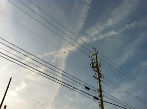 しかし、今日のようにいきなり沢山の飛行機が飛ぶ時には「ついで!?」に不思議な飛行機雲がバンバン出ています。