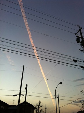 おまけに不思議な飛行機雲はバンバン広がり青空を奪って行きます。