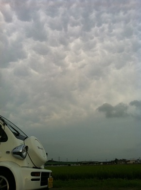 この雲が直接地震雲とは言いませんが始めて見る大迫力の不思議な雲でした。