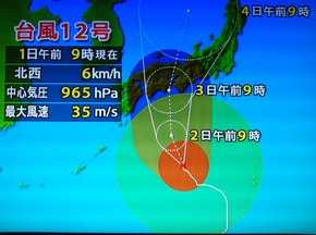 いよいよテレビでも忠告を促している「台風12号」が私達の街にも近付いてきたようです。
